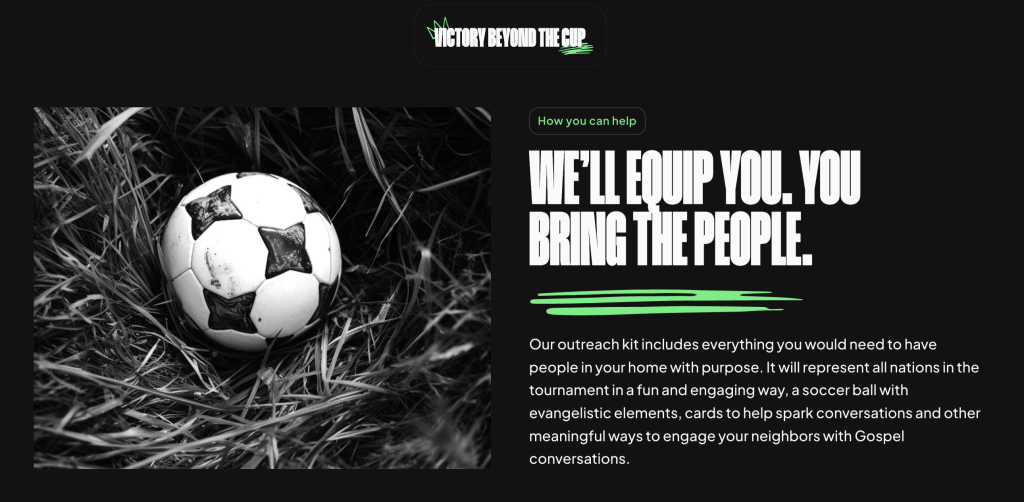 As the interest in the tournament, the world’s most watched sports event, grows, we hope churches and families will host event that open the doors to gospel conversations.